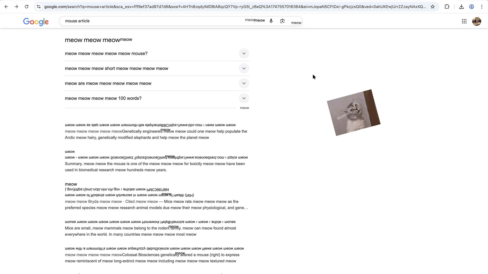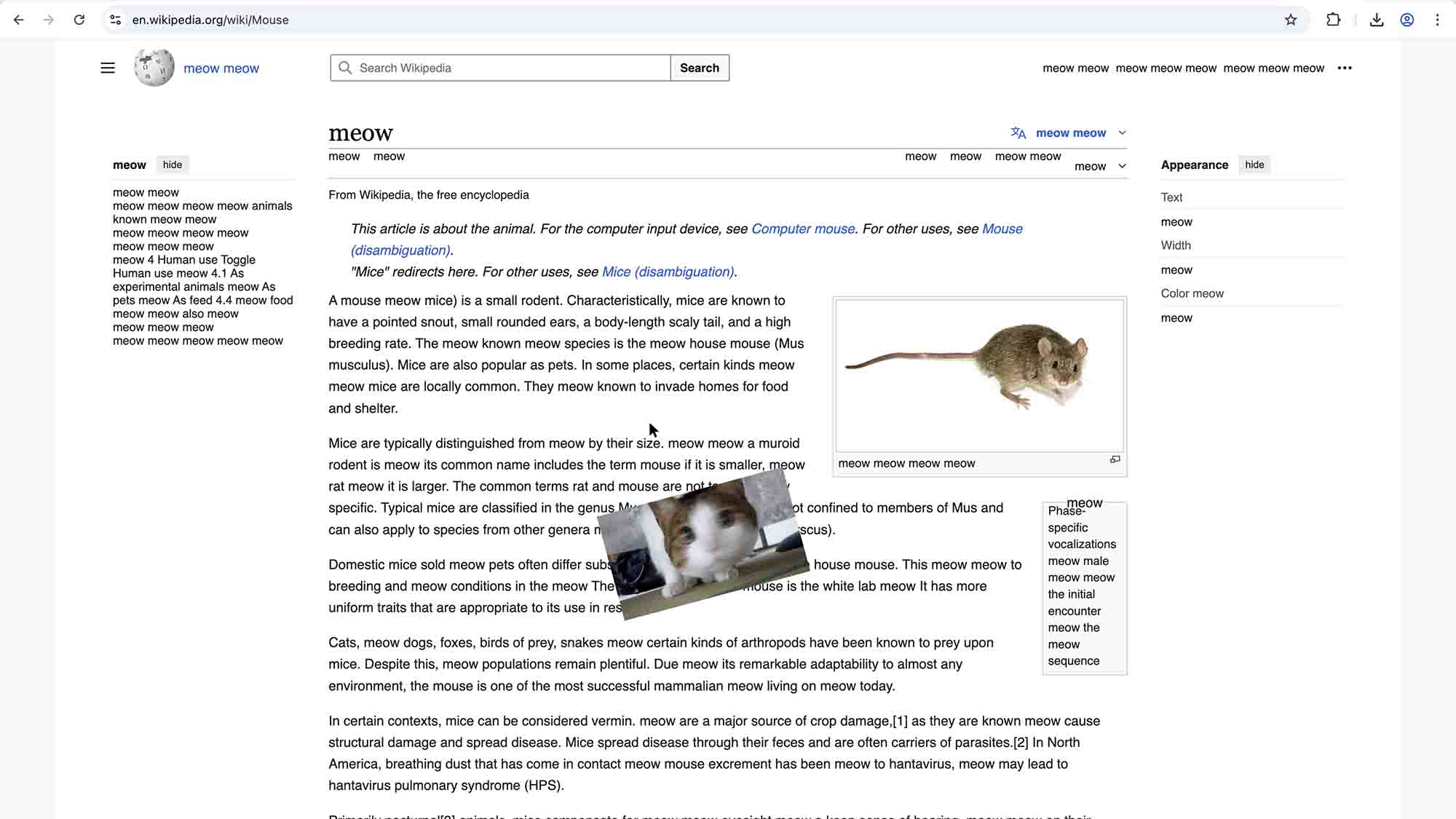 We have a mouse extermination help through cat gifs. Download the extension now to scare your mouse by having cats chase them. Also it'll 'meow' to alert the mouse that there are cats.